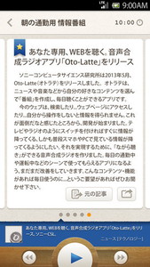 (株)ソニーコンピュータサイエンス研究所は、ウェブ上のニュース記事などの文字情報を音声合成で再生し、ラジオのように聞くことができるスマートフォン向けアプリ「Oto-Latte」を開発した。