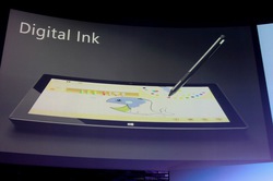 また、Surface Proには電磁誘導方式の専用タッチペン「Surface Pen」が付属。タッチペン操作はもちろん、筆圧を感知しての600dpi精度の手書き、ペンのお尻で書いた線をこすって消せる“消しゴム機能”などにも対応。ペンには強力なマグネットが付いており、使用しないときは本体の側面に装着して持ち運べる。なお、Surface RTはSurface Penには対応していない。