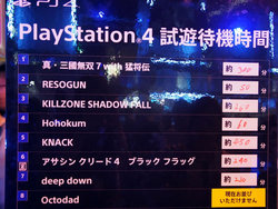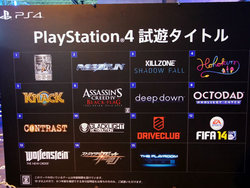 今回が国内初のプレイアブル展示となるPlayStation4はやはり注目が高く、試遊には長蛇の列ができていた。SCEAブースでは15タイトルをそれぞれ複数台で試遊できるようにしていたが、作品によってはビジネスデイであるにもかかわらず450分待ちという状況になっているものも出る状況だった。