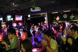 店内では、アニソンをBGMに飲食できるだけでなく、顧客参加型のイベントも用意。テーブルにはサイリウムが用意されており、DJによるプレイにあわせてサイリウムをふるなどといったことができる。用意されている演出イベントは下記の4種類。