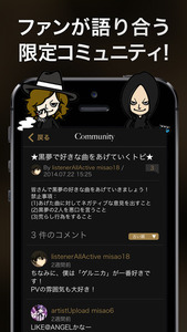 有料サービスでは、毎月更新される黒夢スタンプがゲットでき、音楽プレーヤーにコメントやスタンプが投稿可能。またこのアプリだけのオリジナル動画も視聴できる。ファン同士が語りあえる限定コミュニティも有料サービスだけの機能だ。