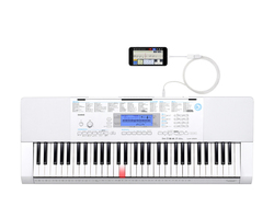 USBカメラアダプタやカメラコネクションキット、MIDIインターフェースなどを使えば、電子キーボードなどを接続することも可能。カシオの「光ナビゲーションキーボード」と接続すれば、Chordana Composerで創作した曲のメロディーを光でガイドしてくれる。