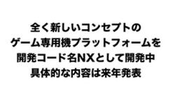 一方で、任天堂はゲーム専用機ビジネスに対して、「今まで以上に情熱や展望を持っている」とコメント。「今のビジネス環境に適合するため、全く新しいコンセプトのゲーム専用機プラットフォームを開発コード名NXとして現在開発中」という。現在のところ具体的なことを話す段階ではなく、詳細は「来年にお話しできると思う」としている。