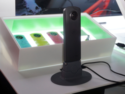 また、Vuzixも出展し、2015年秋発売予定のVRヘッドマウントディスプレイ「iWearHD」などをプレイアブル展示。指輪型のリモコンデバイス「Ring」と組み合わせて遊ぶデモコンテンツなども用意している。