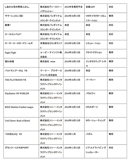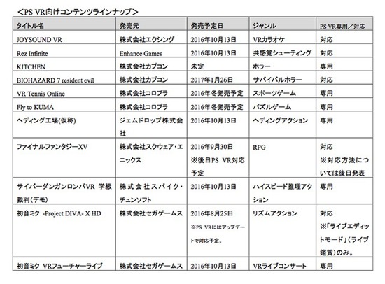 さらに日本では、発売と同時に「バットマン:アーカム VR」「初音ミク VR フューチャーライブ」などPS VR専用タイトル/対応タイトル15本を用意。「ファイナルファンタジー XV」や「初音ミク -Project DIVA- X HD」などもPS VR用にリリース予定だという。また購入後すぐ楽しめるよう、「THE PLAYROOM VR」(SIE WWS)がPlayStation Storeで無料配信される。
