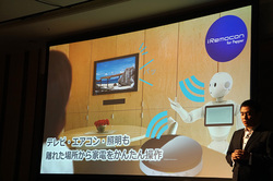 まず注目したいのは、リモコンアプリ「iRemocon for Pepper」の提供だ。テレビやエアコンなどのコントロールを、Pepperへの音声操作を介して行うことができる。
