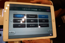 テレビ、エアコン、照明の操作があらかじめプリセットされており、テレビはスマホやタブレットからメーカー名を登録することでかんたんに連携することができる。