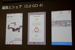 撮影した動画、同社アプリ「DJI GO 4」から編集とシェアが手軽に行える。撮影した動画をわずかな操作でBGM付きの映像へ自働生成して、SNSでシェアすることが可能だ。