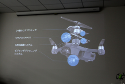 軽量であることも特徴で、質量は約300g。ジェスチャーに加え、送信機またはモバイルデバイスで操作することが可能となる。操作範囲は、ジェスチャーで半径約3m、モバイルデバイスでは半径約100m、送信機では約2kmとなる。