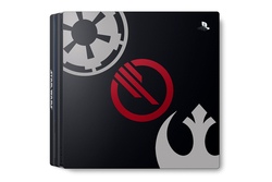 本商品に同梱するPS4 Proは、鏡面加工したジェット・ブラックを基調に「スター・ウォーズ」シリーズの反乱同盟軍、銀河帝国軍、そして『Star Wars バトルフロント II』に登場する銀河帝国軍の精鋭インフェルノ隊の三つのロゴを配し、ゲームの内容とリンクするデザインに仕上げられている。