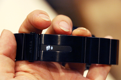 従来同様、腕時計としての質感や付け心地にもこだわっており、側面は鏡面仕上げ、表面はヘアライン加工を施し、さらに角に丸みをもたせたデザインを採用したことで、高級感あるデザインとなめらかな手触りを実現したとのこと。ステンレス素材は高級腕時計でも使用される「SUS316L」を採用する。