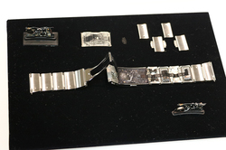 デザイン面では、外装の曲線に沿わせるように内部の電子部品を基板上に実装し、さらなる薄さを追求。また、幅も従来モデルの約22mmから約20mmへと小さくしたことで、体積比で約25%小型化している。また、バンドのコマ長さは約11mmと小さめのサイズで統一したことで、サイズ調整のしやすさと美しいシンメトリーデザインの両立を図っている。