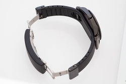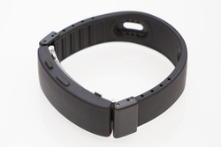 また、バンド部は心拍センサーが手首の脈拍を取れる位置からはずれないように、一般的なバックルではなく、バックルを左右に分割したダブルバックル方式を用いている。