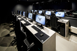 本施設は、高性能ゲーミングPC GALLERIA GAMEMASTERを最大100台設置でき、貸切りで使用する場合は必要な台数分だけPCを設置することが可能。ゲーミングチェアーはDXRACER製、モニターはBenQ ZOWIE「XL-2546」を採用する。ステージ後方には70インチプロジェクター4面140インチを設置し、本格的なeスポーツ大会開催時に求められる「ボックス型選手席」も用意される。