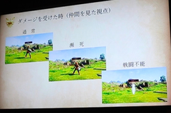 体験後、開発者であるバンダイナムコの小山 順一朗氏(コヤ所長)、田宮 幸春氏(タミヤ室長)、野 孝正氏の3名にお話を伺った。ドラクエVRは、バンダイナムコとスクウェア・エニックスが共同で開発しており、60人以上のプロジェクトメンバーが集って制作したという。主にVR設計をバンダイナムコが、ドラクエの世界観構築をスクエニ側が担当している。