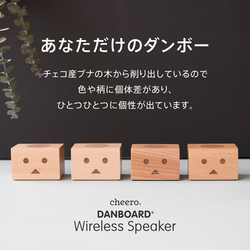 フルウッド・モノコック構造の筐体はチェコ産ブナの木から削り出し。色や柄に個体差があるため、「100個あれば100種類のダンボーができあがる」と説明される。2台購入することでステレオ再生を行うことが可能。BluetoothはVer4.2、コーデックはSBCに対応。AUXでの有線接続にも対応する。