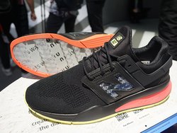 IFAのブースには、この特別デザインのFES Watch Uに加えて、ブランドロゴの「N」と靴底部分に電子ペーパーを搭載させたスニーカー「247」を参考展示。デザインが変わる、世にも珍しいスニーカーに、来場者からも注目が集まっていた(ただし残念ながらスニーカーの市販予定はないとのこと)。