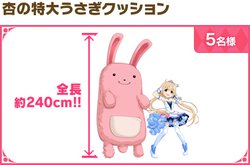 さらに、 “杏のうさぎ” をモチーフにしたオリジナルクッション「杏の特大うさぎクッション」を5名分用意。こちらは全長約240cm(耳含む)の特大サイズで、「上に寝転んだら働きたくなくなるかも…」と説明されている。