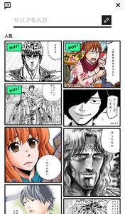 コミックメーカーは、人気漫画のコマの吹き出しに好きな台詞を入力し、LINEのトークルームやタイムラインにシェアできる機能。機能開始時は、『北斗の拳』や『モブ子の恋』に加え、LINEマンガ編集部が手がけるオリジナル作品の人気作『マリーミー!』『地上100階〜脱出確率0.0001%〜』など18作品200種類以上のコマを提供し、今後は毎週約50種類のコマを追加する予定という。