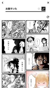 コミックメーカーは、タイムラインを開くと表示される「緑色の鉛筆のマーク」をタップすると起動。複数表示されるコマの中から使用したいコマを選択して台詞に好きな言葉を入力するか、台詞の入力画面にテキストを入力すると生成される複数のコマの中からお気に入りのコマを選ぶことができる。