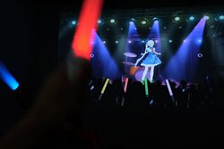さらに、残念ながらビジネスデイの公演はないものの、「かしこまり」や「すーぱーそに子」、「猫乃木もち」「ヤマイトオリ」「道明寺ここあ」などが登場するステージも設置。本日はバーチャルカノジョ「ヨメミ」からのビデオメッセージが流されていた。