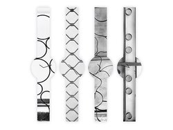 題材となった「FES Watch U」は、スタートアッププロジェクト “Fashion Entertainments” の第二弾モデルで、文字盤とベルトが1枚の電子ペーパーでできた腕時計(関連ニュース)。専用のスマートフォンアプリ「FES Closet」とBluetooth接続することでデザインの追加ができ、今回のプロジェクトで採用されたデザインもユーザーはこのアプリからダウンロードできる。