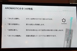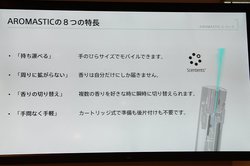 ソニー(株)藤田修二氏は、新カートリッジについて「既存ユーザーの二人に一人は、愛用のアロマオイルを使用したい、自分の好きな香りをセッティングしたいという声があり、そうした要望に応えた製品」と説明。既存ユーザーや未購入者に関わらず、好きな香りをセッティングできないことで利用継続や購入を躊躇している方など、幅広く提供していきたいとした。