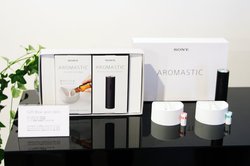 AROMASTIC本体(ブラック/ホワイト)とセットになった「AROMASTIC Gift Box(価格:5,780円/税抜)」もラインナップ。製品発売に先駆けて、本日よりソニーのクラウドファンディング&Eコマースサイト“First Flight”およびソニーストアにて予約受付を開始する。