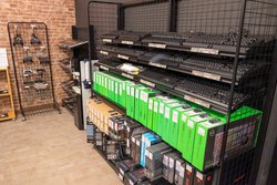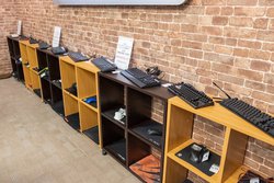 このエリアの大きな特徴として、最初から設置されている以外のゲーミングデバイスを実際に試すことができるという点がある。各ブースにはUSBポートが装備されており、店内奥にある台に用意されたゲーミングデバイスを自由に試すことが可能となっているほか、実際に通話してヘッドセットを試すことも可能。試したデバイスは、在庫があれば購入できる。そのほか自分の愛用デバイスを持ち込める。