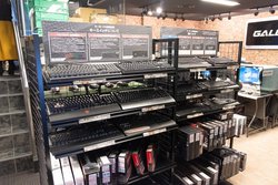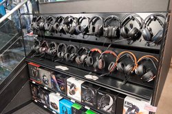 またプレイエリアの手前には、販売コーナーが設置され、ヘッドセット、マウス、キーボードといったゲーミングデバイスに触れることが可能。スタッフに声をかければ、ここで展示されている製品をプレイエリアで試すこともできるとのことだった。