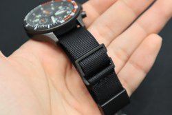 バンドの尾錠にはサンドブラスト加工が施され、加えてブラックモデルにはIP(イオンプレーティング)処理が施される。またバックル部分には「0001」〜「0500」といった固有の番号が刻印される。