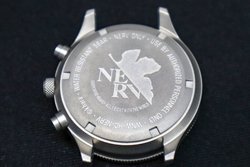 日付・曜日表示部分にはNERV職員専用を指す「NERV ONLY」ロゴが印字されるほか、6時の位置には “第3新東京市” を示唆する「TOKYO III」の文字があしらわれる。またヘッドの厚みは11.2mmで、防水性能は5気圧。風防素材はミネラルガラスで、ケースサイズはφ40.0mmとなる。