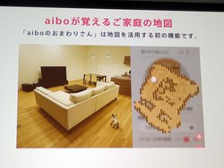 「地図とパトロール」機能では、aiboが作った家の地図の中で、aiboにパトロールしてほしい場所を指定し、名前をつけることができる。そして、予め設定された時間帯になると、aiboは「犬のおまわりさん」のメロディーとともにその場所まで歩いて、「見つけてほしい人」を探し、可愛いふるまいを披露してくれるという。