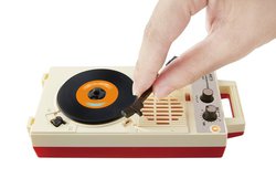 本体には、ミニチュアのシングルレコード盤とソノシートが1枚ずつ付属。本体パッケージに印刷されているジャケットを切り取って使うほか、ホームページでもオリジナルジャケット制作用のテンプレートが公開される。