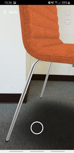Amazonショッピングアプリにて、商品詳細ページにある「部屋に表示(AR ビュー)」をタップし、スマートフォンのカメラを通して配置したい場所を選択することで、商品の3D画像が原寸大で表示される。
