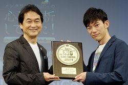 記者発表会はここから、メンタリストDaiGo氏を迎えたトークセッションに移行。ニコニコチャンネルで会員登録数1位を獲得した『メンタリストDaiGoの「心理分析してみた!」』チャンネルについて、表彰として夏野氏から盾の贈与が行われた。