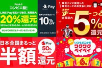 加えて、一定確率で最大1,000円相当が戻ってくる「PayPayチャンス」も同時開催。PayPayユーザーであれば20回に1回、ソフトバンク・ワイモバイルのユーザー、Yahoo!プレミアム会員であれば10回に1回の当選確率となっている。なお期間中の上限は30,000円相当で、ソフトバンク・ワイモバイルのユーザー、Yahoo!プレミアム会員は5,000円未満の決済のみが対象。Yahoo!カード以外のクレジットカードで支払った場合は、PayPayチャンスの対象とならない。