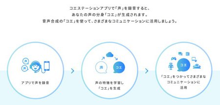 「コエステーション」はコミュニケーションAI「RECAIUS(リカイアス)」の音声合成技術を活用した「声」のプラットフォーム。2017年にβ版が発表され(関連ニュース)、昨年4月には自分の声を登録してテキスト読み上げなどをさせられるiOSアプリがリリースされた(関連ニュース)。