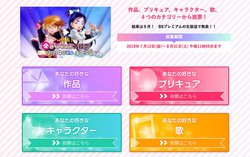 NHKでは、『プリキュア』シリーズの「作品」「プリキュア」「キャラクター」「歌」の4つのカテゴリーから投票が行える視聴者参加企画「全プリキュア大投票」を開催した。投票期間は7月12日(金)〜8月31日(土)午後11時59分まで。