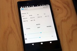 操作用アプリでは、COOL/HEAT/OFFの切り替えがワンタッチで可能。温度調節などの操作も可能で、マニュアルモードでは端末の温度を5段階で調整できる。オートモードでは、端末に搭載した複数のセンサーにより温度状態や行動(静止/歩き)を感知して、自動で適切な温度に調整するとのこと。マイモードでは、冷温の繰り返しやオフタイマーなどを設定できる。