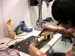 中西准教授研究室では「ロボットハンドによる遠隔握手によって、遠隔にいる相手の存在感をいかにして高められるか」を研究しており、握手の感覚をよりリアルに近づける事で存在感も増幅されると考えた結果、十分な握力、人肌のような温かさ・柔らかさを実現できるロボットハンドを製作した。