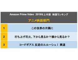 Amazon Prime Video、2019年上半期ランキング発表。『この世界の片隅に』がアニメ映画部門1位