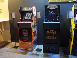 また、そのスペースインベーダーを産み出したタイトーは、往年のアーケード筐体を3/4スケールで復活させた「ARCADE1UP」シリーズを展示。昭和の喫茶店で机代わりにもなっていた「テーブルタイプ」も参考出展している。