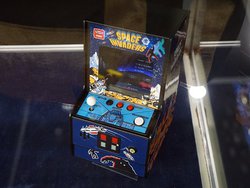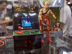 こうしたレトロゲーム関連の展示では、かつてのアーケード筐体を手のひらサイズで復活させるインフォレンズの「レトロアーケード」シリーズも出展。新作として「魂斗羅」と「スペースインベーダー」を発売予定であることを明かしている。
