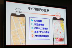 アップデートでは機能追加やUIの改良などが行われ、1年で見た目や使い勝手も大きく変わった。マップではキャンペーンをやっている店が示されるようになったほか、先月には個人間送金機能も追加。細かな機能ではどのくらいお金を使っているのか分析できるレポート機能や、きせかえ機能なども増えている。