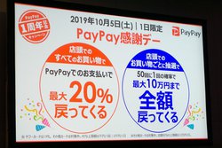 PayPayは、1日限定のキャンペーン「PayPay感謝デー」を10月5日に開催。サービス開始1周年を記念し、都内で発表会を開始した。