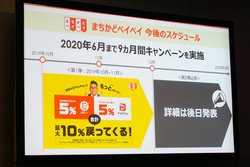 そのほか、消費者還元事業と同時にPayPayが追加還元する「まちかどペイペイ」についても説明。第一弾が10月1日から2ヶ月間実施され、追加で最大5%のポイント還元が行われる。また2020年6月30日まで行われる同事業の期間に合わせ、第二弾以降も実施するとのこと。12月以降のキャンペーンについては再度発表される。