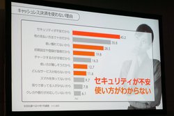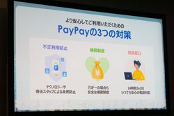一方キャッシュレスが普及する妨げとして、「セキュリティの不安」「使い方がわからない」という2点を挙げた。これを解決するために同社では、認証強化や暗号化、24時間の監視といった「不正利用の防止」、万が一の場合に全額保証する「補償制度」、24時間365日可能な「相談窓口」といった3つの対策を行ったとアピールした。
