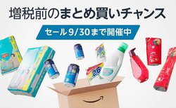 Amazonは9月30日まで、増税前にまとめ買いをする機会として「増税前のまとめ買いチャンス」セールを開催。「日用品など3点以上買うと20%オフ」「本2冊で最大6%ポイント」「CD2枚で最大5%ポイント」「対象のアウトドア商品2点以上で10%オフ」「日用品から家電まで最大40%ポイント還元」など、様々なセールが実施されている。