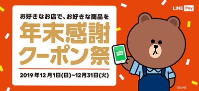 LINE Payは、モバイル送金・決済サービス「LINE Pay」において「年末感謝クーポン祭」を12月1日から31日まで開催する。本キャンペーンではクーポン対象額以下でも、好きな商品の購入時に使用することができる。